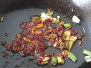 详细操作备用豆腐块,洋葱切粒状,香菇切丁状,葱花适量清水烧热加入豆腐煮2分钟盛出备用油锅登入香菇炒香放入洋葱加入少量水。再加入辅助材料辣椒酱,盐等倒入备用中...