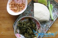 详细操作准备食材。锅中放适量油,炒香葱姜末。加入压碎的豆腐略翻炒两分钟。加入经过略泡发的海米略炒。加入雪里蕻末略炒。(我用的是开袋即食的)加入一勺料酒去腥...