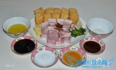 详细操作主料:五花肉580克、油豆腐320克。辅料:盐3克、美极鲜酱油10克、香葱20克、生姜20克、黄酒30克、老抽酱油60克、素油60克、桂皮少许、茴香半个。处理食材:...