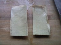 详细操作将干豆腐切成长方形将香菜洗净,切段将香菜放在干豆腐上从下开始向上卷穿成一个豆腐串将电饼铛刷一层油,预热。将豆腐串放在电饼铛上煎。将豆腐串放在电饼铛...