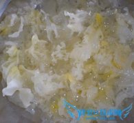 详细操作11、将银耳用温水泡发,去杂质洗净,放在沸水中氽透,捞出沥去水,摆放在盘子里。2将豆腐压碎成泥,加入精盐、味精、生粉,搅拌成糊状,上面撒些香菜叶,上...