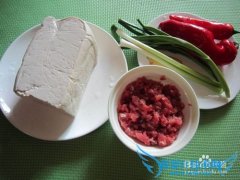 详细操作准备好所用食材,把瘦肉剁碎。把生姜剁成蓉加入瘦肉中。再加入适量芝麻油,盐和生抽搅匀备用。把豆腐切成厚约1CM,长约6CM的片,辣椒去籽切段,青蒜切段。不...