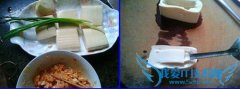 详细操作嫩豆腐切成两小块,用勺子把中间挖空,然后塞入肉末.不粘锅坐油,放入豆腐块,稍微煎一下四面定型煎好的豆腐装盘,把准备好的蒜头和洋葱切碎,4,煎豆腐锅里还有油...