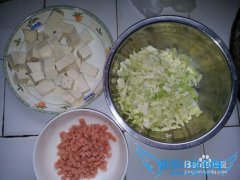 详细操作1准备食材。包括,对豆腐切块,对白菜切末,对火腿切丁,对淀粉打水。开火,放油,微炒洋葱加水。视人数判断水的量。加淀粉水。加豆腐块。然后,小火模式炖...