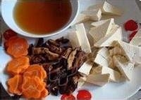 详细操作1.干香菇用水清洗一下,泡水几分钟洗干净,豆腐切块,胡萝卜切片2.锅中加入油,至油热以后,豆腐块下锅3.将豆腐煎至两面金黄4.将泡好的香菇切片,香菇水待用(...