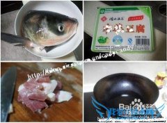 详细操作.鱼肉鱼尾洗干净,生姜切片,咸肉切片,豆腐切成小块热锅凉油,油七八成热放入鱼头和生姜,鱼头煎一下鱼头翻身,加入咸肉片和豆腐再一起煎一分钟放入少许料...