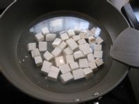 详细操作将豆腐切小块,加水放进锅煮开。水煮开了,加入小半勺盐里面。接着倒入水淀粉里面。然后连水带上豆腐,倒在一个大碗里面放着备用。另起一锅,倒入适量的油烧...