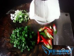 详细操作白豆腐洗净,装进碗里备用。分别将红椒切成片·葱枝叶分开切成丁。炒锅烧热,放油适量,待油温升起将一块白豆腐下锅,边炒边用铲子,铲烂。然后分别将红椒·...