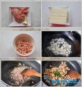 详细操作1热锅热油将豆腐煎至两面金黄。2......3切成三角形片。4热锅温油下葱姜末炝锅,炒出香味。5将肉馅或者里脊肉片放入锅内,加点调味粉翻炒。6将肉馅炒散,变白...