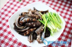 详细操作海参切成宽片,煮透后控去水分。大葱切段。将猪油烧至六成熟时放入葱段,炸至金黄色时捞出,葱油备用。清汤加姜、精盐、料酒、酱油、白糖、海参,烧开后微火...