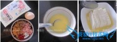 详细操作1雪菜和猪肉剁细腻,剁椒也最好切成细丁。猪肉丁用少许盐、油腌入味;2调蛋液:全蛋一个打散,加入清水,蛋液与水的比例是1:1,并搅拌均匀;3内酯豆腐倒扣...