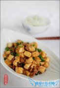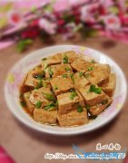 食材原材料:北豆腐250克调味料:大葱片10克、蒜末10克、小葱花10克、花椒粒、酱油2汤匙、生粉1/2汤匙、清水10ml、五香粉2克豆腐的焯制过程1将北豆腐切成大小一致均...