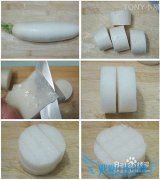 详细操作白萝卜清洗干净后切块;.用刀去皮;.;把萝卜切成丁;放入冰箱冷冻12个小时第二天把冷冻好的萝卜丁拿出放在盘里让其融解,里面的水不要倒掉;热锅后加入大蒜...