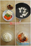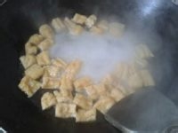 详细操作1将豆腐用清水冲洗干净,切成1.5CM左右见方的块2放入干淀粉中摇匀,抖去余粉备用3锅内放油烧热,放入豆腐炸成金黄色4捞出沥油,放入盘中5锅中油倒出,用余油...