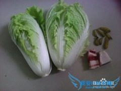 详细操作原材料:鲜嫩大白菜(两棵)·去皮五花肉(二两)·泡椒(七个);大白菜枝叶分开切好,枝切成细条,叶切成大小不一的块状;去皮五花肉切成薄片,泡椒切成小...