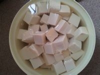 详细操作准备好豆腐,先用盐水浸泡十分钟,为了更好的入味,浸泡好之后切成厚一点的方块,备用。准备大蒜,要一头蒜,多一点好吃,剥好之后切成蒜泥,如下图。姜准备...