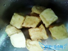 详细操作买来的豆腐洗干净,将豆腐切成20X20X20左右大小的块状,并将开水中焯一下(去除豆腐中的豆腥味)。约两分钟左右,捞出,并沥水,(注意别把豆腐弄碎了)锅中...