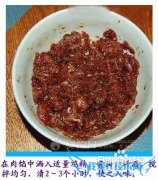 详细操作在肉馅中洒入适量鸡精、酱油、料酒,搅拌均匀,渍2~3个小时,使之入味。2.在豆腐中加入适量鸡精、少量水,捣碎成糊状,状态至刚好可以黏结成团为宜,待用。...