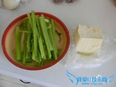 详细操作1芹菜摘洗干净,焯水后过凉捞出。大豆腐一块。2大豆腐切成约半厘米厚、一厘米宽、两厘米长的片。3炒锅烧油,油5分热的时候放入豆腐。4炸到豆腐两面金黄捞出...