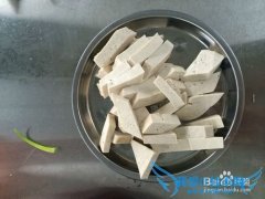 详细操作首先把豆腐用刀切好,最好是倾斜一下刀切,那样不容易切碎。锅内放适量的花生油,开中火慢慢炸,炸到豆腐两面金黄最好。取出两个嫩葱,清洗干净以后连同绿色...