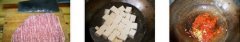 详细操作牛肉混合猪肥肉剁成肉泥待用豆腐入冰箱冷藏3小时,切小块,入锅添水加少许盐,煮3分钟捞出沥水坐锅起油,六成热时转中火下蒜蓉辣酱、油辣子炒匀出红油,加入...