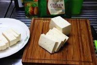 详细操作老豆腐冲冲水,切块。切好的豆腐块里加烤肉料,戴一次性手套拿着豆腐块轻轻沾均匀烤肉料。加入花生油,同上步骤。不粘锅底抹少许花生油,中小火,锅热下豆腐...