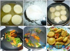 详细操作1将豆腐切成大概1cm厚,沾了鸡蛋清后沾上生粉2将豆腐放在热油中滚一下,等到颜色变深了就捞出3锅里下油,加入蒜,炒出蒜香就可以了,加入蒜薹+胡萝卜4加入一...