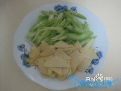 详细操作1先将芹菜洗干净,然后斜切成2-3cm的条,同时豆腐皮切成小片装盘备用;2然后将锅内倒入植物油,热至6成熟,放入切好的葱丝,翻炒;3翻炒数次后,将芹菜倒入...
