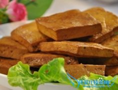 >铁板香烤豆腐的做法步骤1.白豆腐放在冷藏室冷藏24小时。2.倒去水分,用快刀快速将豆腐片成7mm厚度的薄片。3.将多余边角修整齐,豆腐切成5cm见方的小块。4.将豆腐用...