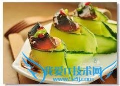 详细操作選用的豆腐,切成小段。黃瓜洗凈,去皮,用刨刀把黃瓜從頭到尾片成長條的薄片把黃瓜的兩頭切個小口,插在一起,中間的位置放入豆腐。將所有調料加在一起調成...