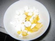 详细操作熟咸豆去壳,切成小丁皮蛋去壳,切成小丁内脂豆腐完整取出入碟;伴以香菜把切好的咸蛋,皮蛋和切好的香菜等铺在豆腐上面;淋入用香醋,生抽和香油调味的酱汁...
