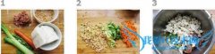 详细操作材料:豆腐,肉末,胡萝卜,葱。胡萝卜切碎,家里剩点黄瓜也被我加进去了(其实材料可以按自己喜欢吃的东西加就好,不用一定得按我的材料)然后装盆里,加入...