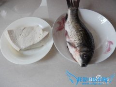 详细操作食材。豆腐切小块。鲫鱼处理干净,在两面抹上少许食盐。切好蒜、姜、葱白和青椒丝。然后取小碗根据个人喜好调好酱汁。锅里烧热,再加入油,把鱼水份擦干再下...