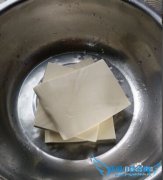 详细操作先准备好4片豆腐,清洗干净切成方块形状,便于炸煎。把准备好的花生油放入锅里,把花生油烧热。然后把切好方块形状的香豆腐倒入锅里,下锅后不要动香豆腐,...