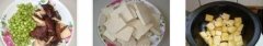 详细操作水发香菇洗净切块,青豆(超市袋装有卖)淘洗干净把材料备好;将豆腐切成方片,然后锅烧热放植物油,下豆腐片,小火煎至两面金黄。再锅中加适量的生抽、料酒、...