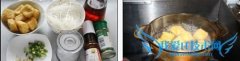 详细操作1、准备好所需原料,姜切丝、香葱切成小小段、粉丝泡软。2、锅中放入清水煮沸后放入豆泡和姜丝大煮5分钟。3、倒入浓缩鸡汁。4、倒入黄酒和盐,我喜欢在汤里...