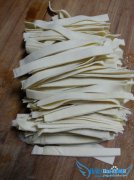 详细操作将豆腐皮洗净控干水分,切成0.8厘米宽的长条。将青椒洗净,切成0.8厘米宽的长条。锅内倒入花生油烧开,放入葱丝姜丝,炝锅。喜欢辣的可以放入两个红辣椒。倒...