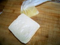 详细操作1.将豆腐撕去豆腐盒表面的封口,然后轻轻地扣在菜板上,用刀将盒底的四个角都割开一个小口2.轻轻怕打盒子让豆腐脱离盒子的四壁,然后轻轻地将盒子拿下来,这...