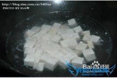 详细操作首先将适量的豆腐洗干净,放入盘中。(豆腐的多少根据个人的需要而定哦);然后将豆腐切成块,放入清水中漂洗一遍;将豆腐块放入锅中,将水沥干;将锅中倒入适...