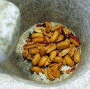 详细操作先将花生仁捣碎。将内脂豆腐倒在盘子中,用小刀横竖画几刀,利于味道的渗入。将捣碎的花生仁,捣好的蒜泥,切好的小辣椒,香菜末,都叠加在内脂豆腐上。将酱...