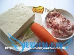 详细操作牛肉100克剁成肉馅。把肉馅放进小碗里,准备老豆腐一块。把豆腐划成小块。放微波炉里高火加热两分钟倒出里面的水。肉馅加葱花,姜末,香其酱,盐等调料搅拌...