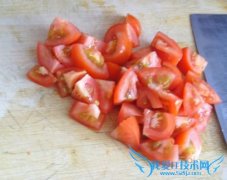 详细操作将豆腐切成1.5—2.0cm的小方块,番茄去皮碎,香葱切段不要太长,白糖备用蒜切碎白豆腐方开水里烫3分钟捞出(夏天可放入冰水中冰一下),控干水装盘待用。少...
