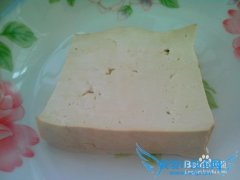 详细操作首先是将从市场买来的新鲜的豆腐用清水冲洗一下。把清洗干净的鲜嫩豆腐放入盐水中泡半小时。然后把用盐水泡过的鲜豆腐用菜刀切成大小相等,薄厚也相等的豆腐...