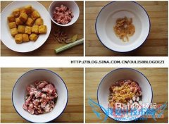 详细操作1猪肉切成泥,加盐酒鸡精少许蛋液拌均匀,加淀粉做成小的丸子。2日本豆腐切段,中间挖小孔(我用小调羹所以做的不是很好)撒少许盐。3把小肉丸放在挖好的豆...