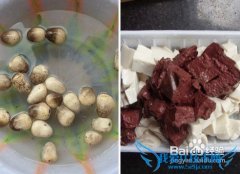 详细操作红白豆腐溜草菇制作流程:1,所有食材准备好。2,草菇摘去根部杂质,洗净备用。3,洗净的草菇,对半切开。4,豆腐猪血洗干净,切成块,备用。5,炒锅加热,...