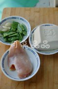 详细操作11、准备材料。22、鸡胸肉洗净后,把刀横过来,把鸡肉拍松,切成丁,先放一勺料酒抓匀,再放一勺蚝油抓匀,最后放一勺色拉油拌匀腌制备用。豆腐切小块,荷兰...