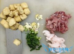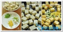 详细操作将豆腐切成长4厘米、宽3厘米、厚5毫米的长方块;去皮猪肉去筋膜,切成薄片,放入少许盐和水淀粉入味拌匀,待用炒锅置旺火上,放入豆油,烧热,中火,将豆腐...