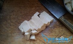 详细操作卤水豆腐,四川自古盛产井盐,所以副产品盐卤会非常多,恰好用来点豆腐,所以四川当地的豆腐质量也是相当的好,豆腐切成1.5CM左右的小方块,放到锅里加少许...