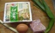 详细操作准备好食材。豆腐切成薄片再切成菱形片,在鸡蛋液中沾一点。把豆腐片放在油锅中煎制两面金黄。煎好的豆腐片放在盘里备用。猪肉,胡萝卜,黄瓜切片,葱姜切丝...
