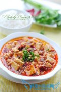 详细操作豆腐切成块,用淡盐水浸泡10分钟(防止一会儿炒碎)锅内热油,放入猪绞肉小火煸炒。至猪肉出油脂时,放入姜、蒜、葱花、泡椒炒香。注入清水或高汤半杯。加入...